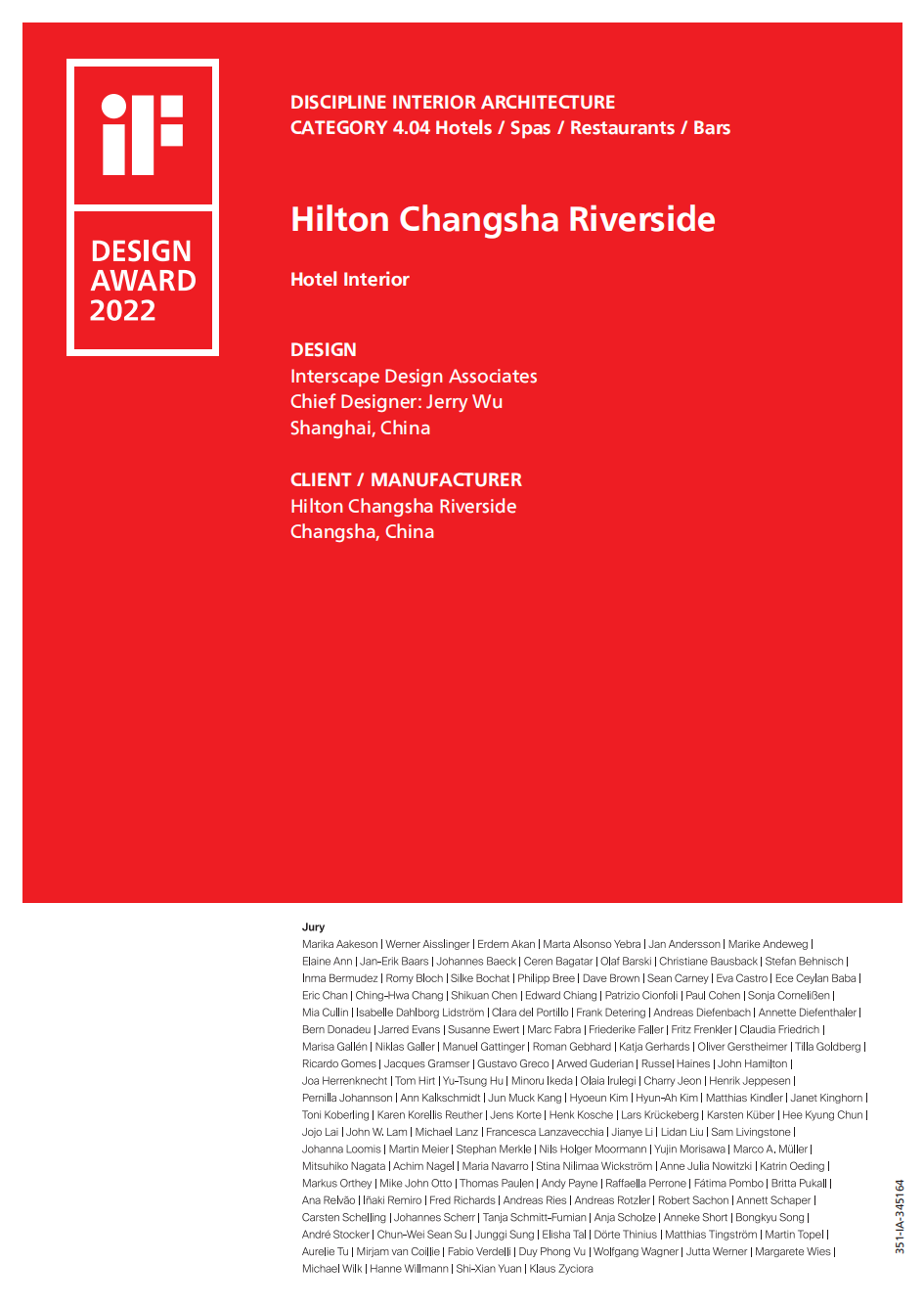 近期,长沙J9(中国)希尔顿酒店凭借优秀设计理念,上榜世界三大设计奖之一的iF设计奖(iF DESIGN AWARD)。此前,该项目还曾荣获2021MUSE设计奖铂金奖。