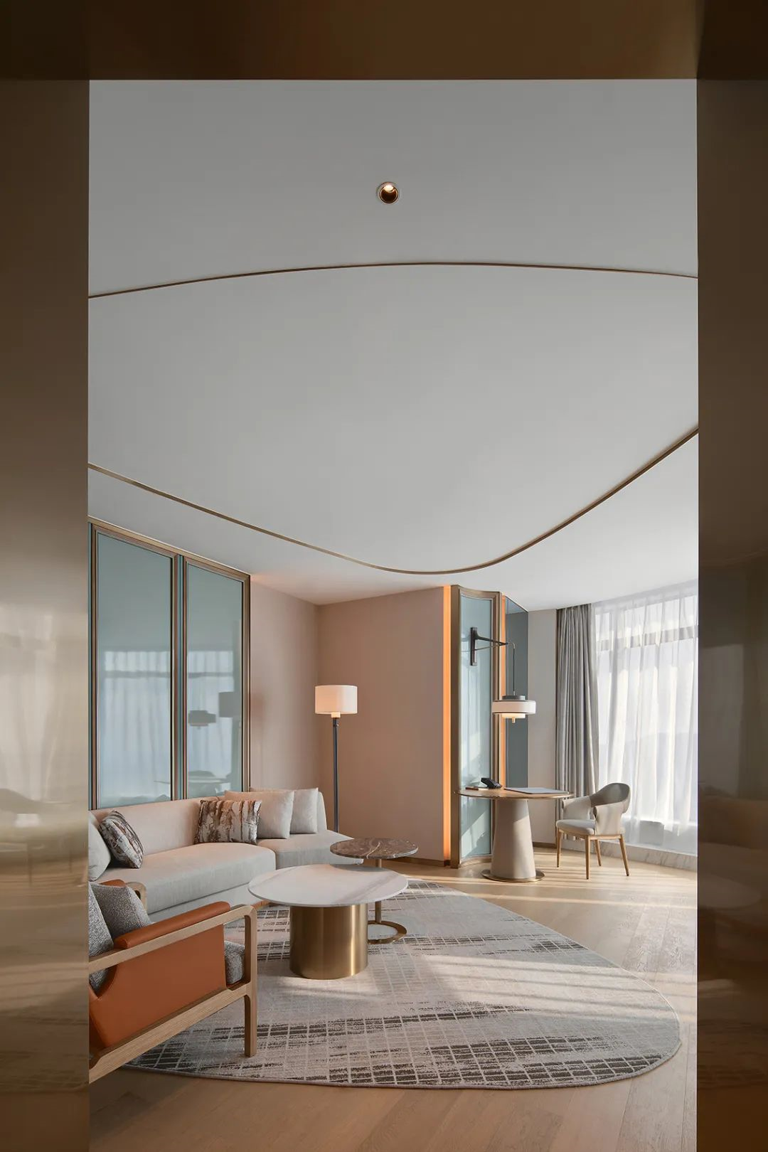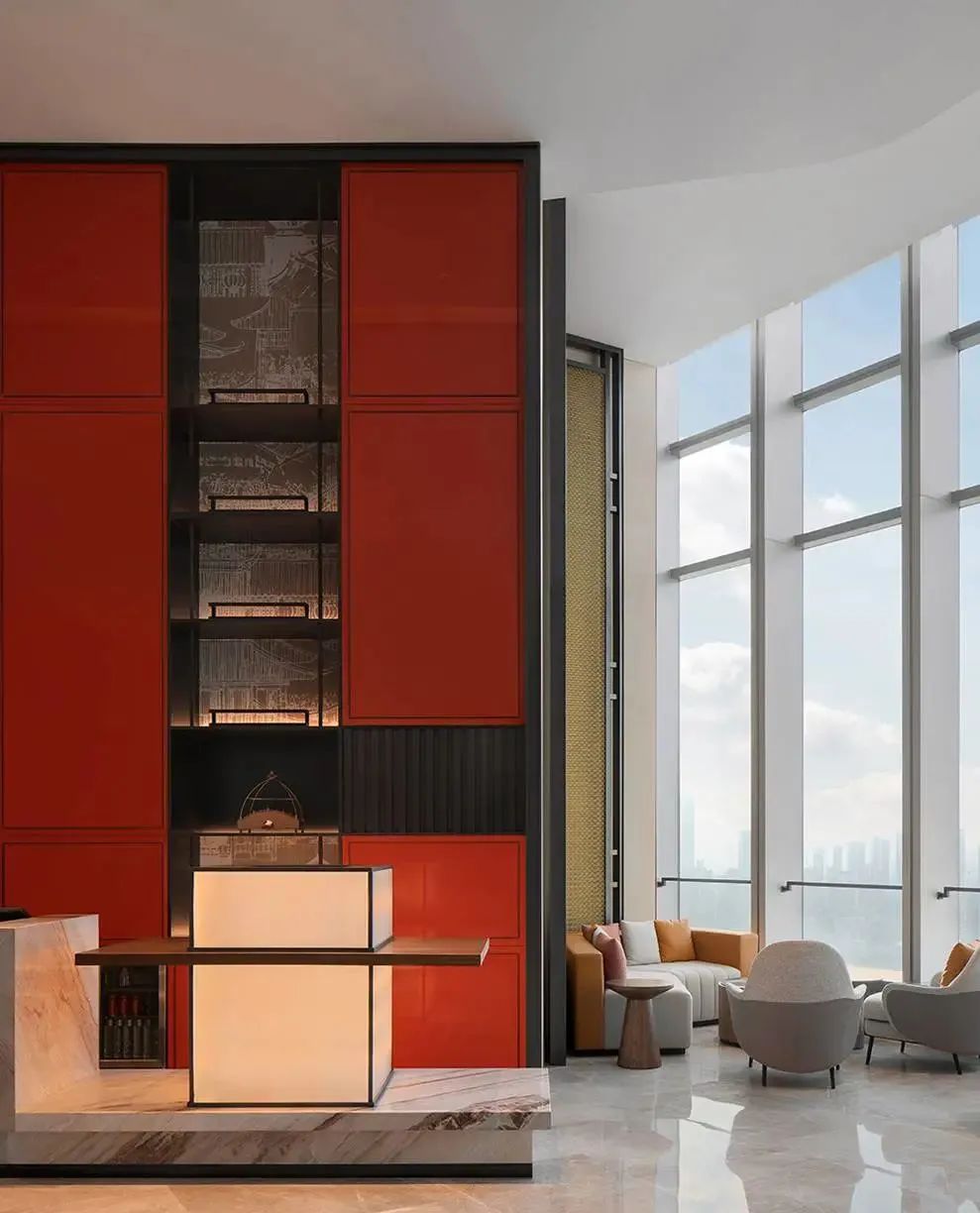 设计方面,酒店将楼阁宫室的精致优美与仙界楼台的建筑形态用设计的语言转译为几何元素,将长沙历史古都建筑天心阁、潇湘八景,恰如其分的融入室内设计。
