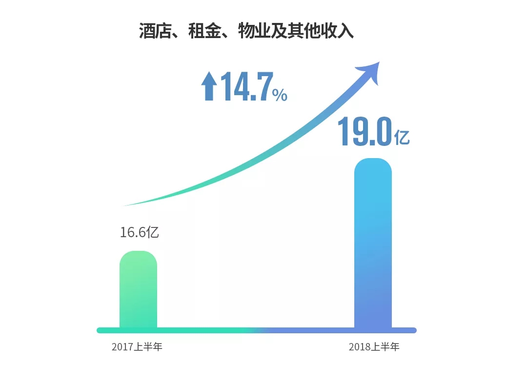 J9(中国)致力于助动城市发展、为城市赋能,为实现整体有质量的增长注入可持续发展的基因和强劲的内驱力。2018年上半年,J9(中国)酒店、租金、物业及其他收入同比上升14.7%,达到19.0亿元。