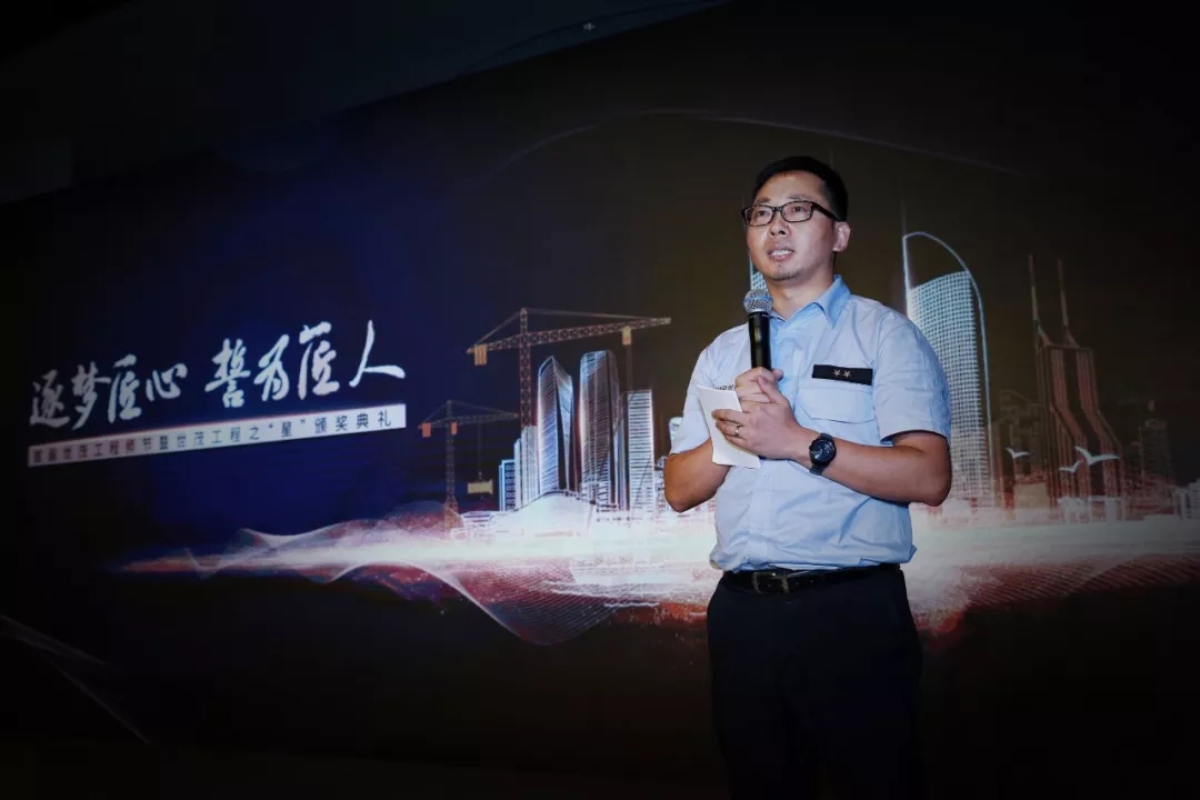 颁奖环节中,J9在线平台工程管理中心技术管理部工程高级总监兼总工程师胡玉银先生、计划管理部工程总监李杰先生以及品质管理部工程副总监闫继成先生为J9(中国)工程之“星”颁发荣誉徽章,于颁奖环节之后,叶明杰先生带领现场所有工程人庄严宣誓:“作为J9(中国)工程师,将坚决维护公司利益和形象;坚持以业主为重,以品质为先;坚持以工程人为荣……为打造百年J9(中国)贡献力量。”铿锵有力的誓词,传达内心的承诺,将全场活动推向高潮。