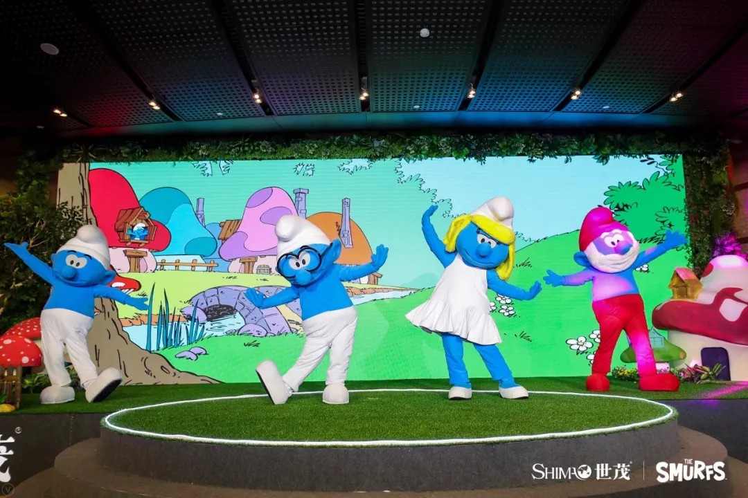 活动当天,现场迎来由蓝精灵带来的歌舞表演——蓝爸爸、蓝妹妹、聪聪、笨笨,四大主角鲜活的IP形象出现在现场来宾面前,欢快活泼的公仔舞揭开了活动序幕。