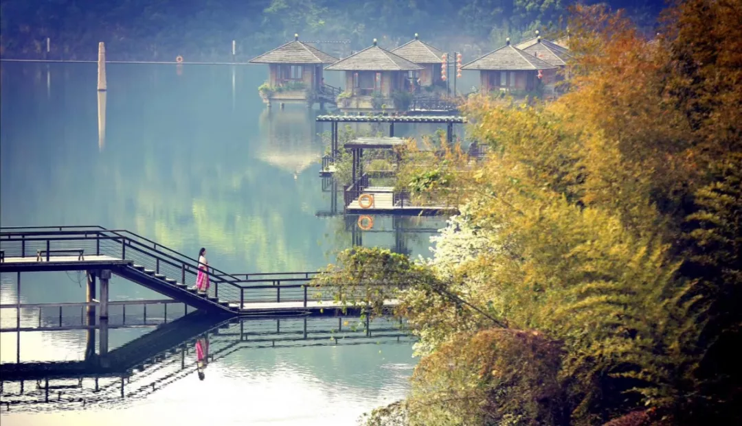 鸣唱的小鸟藏身于云上鼓岭的竹林