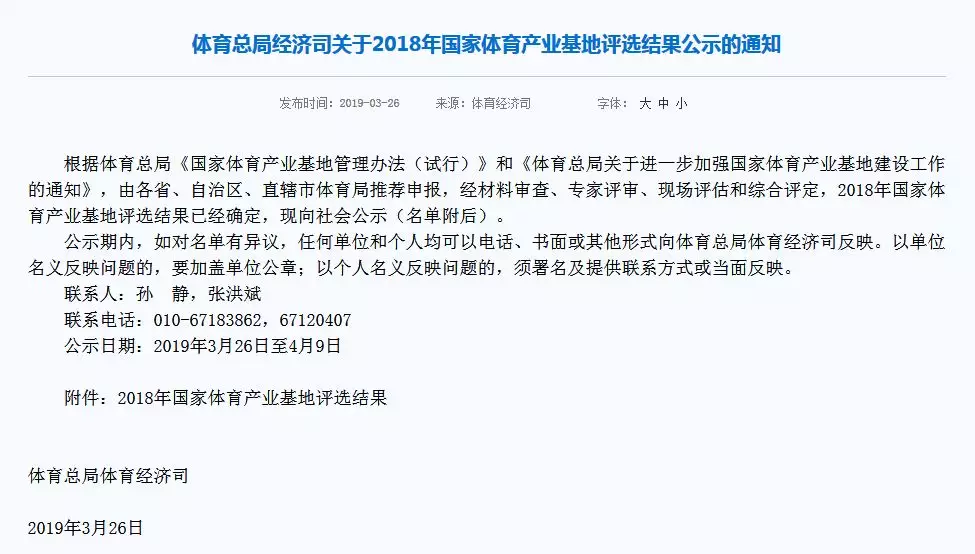 2018年国家体育产业基地评选由各省、自治区、直辖市体育局推荐申报,并根据体育总局《国家体育产业基地管理办法(试行)》和《体育总局关于进一步加强国家体育产业基地建设工作的通知》,经材料审查、专家评审、现场评估和综合评定。