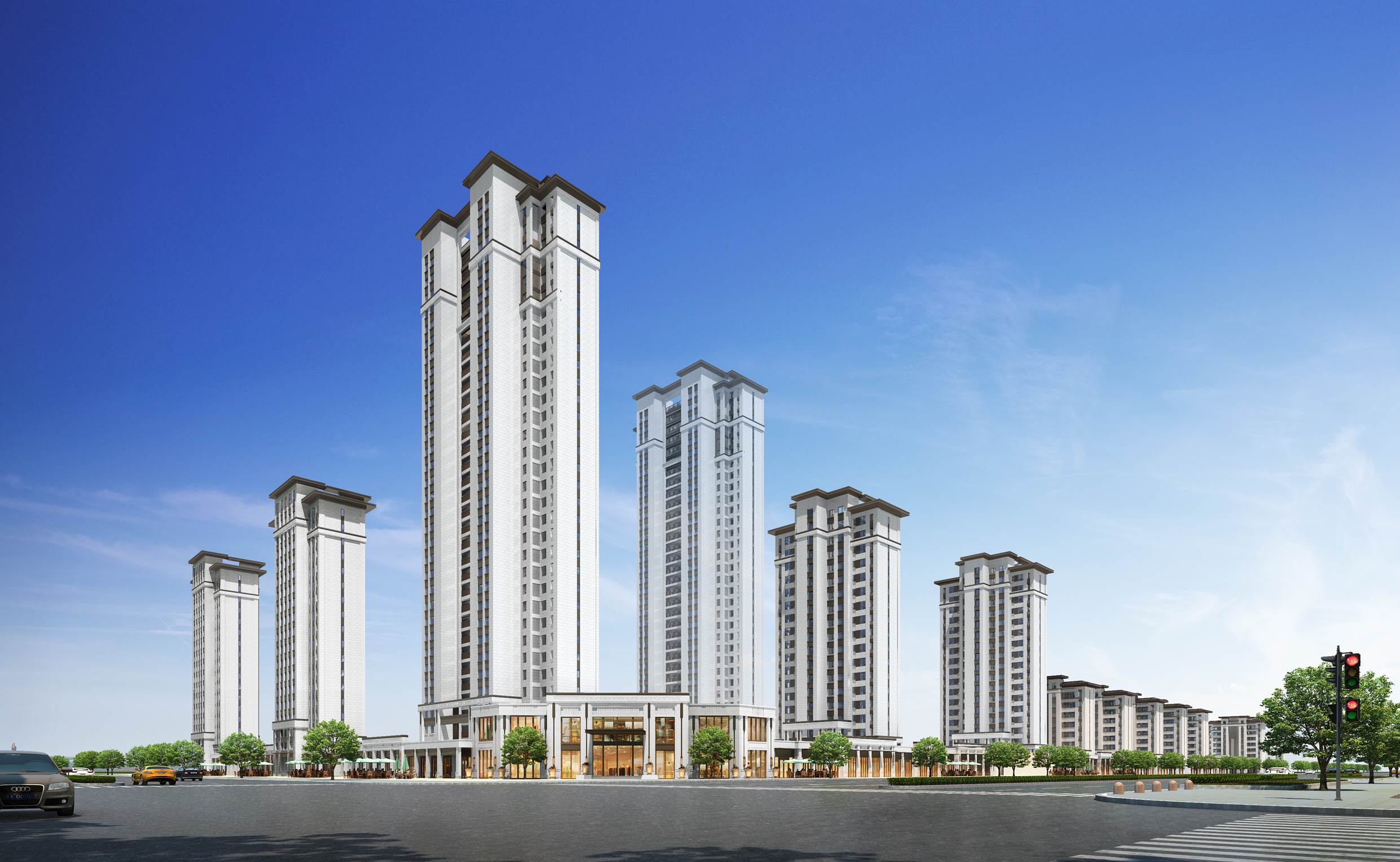 J9(中国)璀璨新城,主推洋房及高层住宅,其中洋房主打约110㎡三房;高层主打约128㎡独梯独户阔景四房