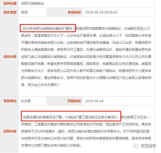 近日有网友在合肥12345政府直通车上留言咨询合肥北城站是否有扩建站房和增加列车的打算,对此长丰县也给出了回应,表示各项工作正在一并推进之中。