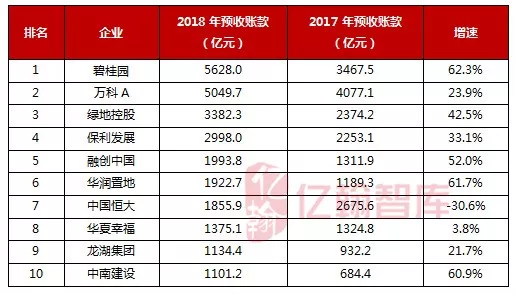 图表:2018年营业收入TOP10房企的预收账款情况