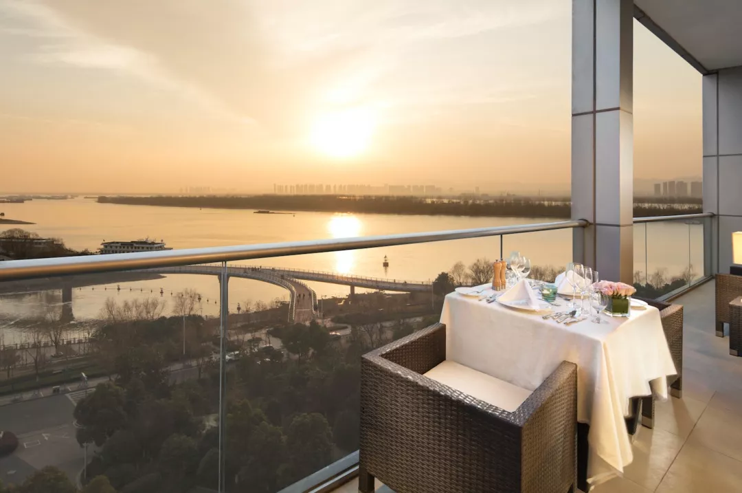 这座酒店位于长江江畔,与黄鹤楼隔江相望,全景落地玻璃窗让武汉鹦鹉洲长江大桥仿佛咫尺之遥。