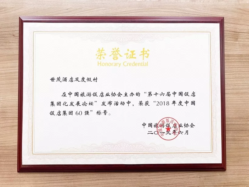 “中国饭店集团60强”荣誉认证具有极高的业内公信力