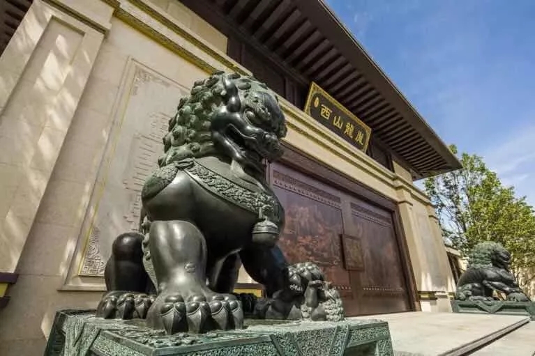 ▸ 1:1复刻太和殿门旁铜狮而成的入口两侧铜狮