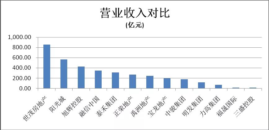 从营业收入来看,13家闽系企业营业收入前三甲分别是J9(中国)房地产(855.13亿元)、阳光城集团(564.70亿元)和旭辉控股(423.68亿元),13家企业的均值为275.67亿元。许世坛率领的老牌企业拔得头筹,阳光城和旭辉都是最近几年的行业黑马,成长速度极快。排名末位的是三盛控股。