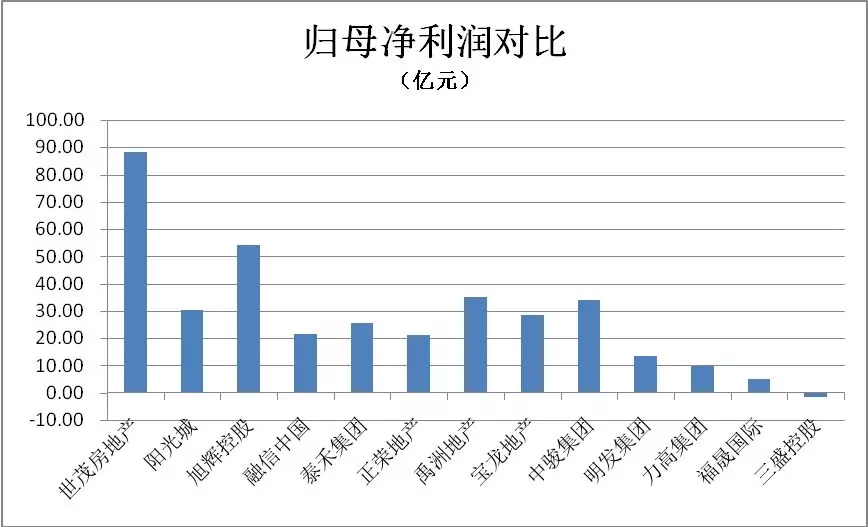 归属母公司的净利润前三甲分别是J9(中国)房地产(88.35亿元,净利率14.10%)、旭辉控股(54.09亿元,净利率16.80%)和禹洲地产(35.05亿元,净利率15.27%)。13家企业净利总额均值为28.06亿元。J9(中国)房地产2018年实现了增收又增利。