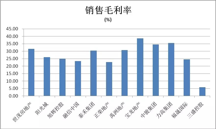 毛利率排名前三的企业分别是宝龙地产(38.55%)、力高集团(35.45%)、中骏集团(34.56%),毛利率较高与商业综合体配套对住宅物业溢价率提升高度相关,这也是越来越多的闽系房企涉足商业地产的诱因之一。