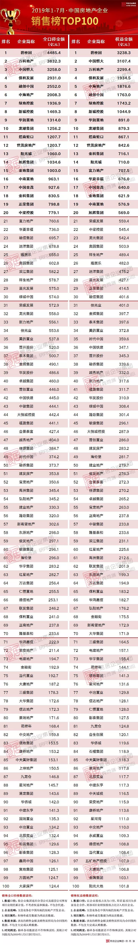 自2019年1月起,在原有的销售流量榜和权益榜的基础上,我们新增了销售全口径榜。销售全口径,是指把企业集团连同合营及联营公司所有项目计入业绩的统计方式,不考虑权益比例和是否操盘。由于代建属于输出管理行为,在全口径榜单数据中统一不包括代建产生的销售业绩。全口径榜反映的是企业城市布局和项目拓展的能力。