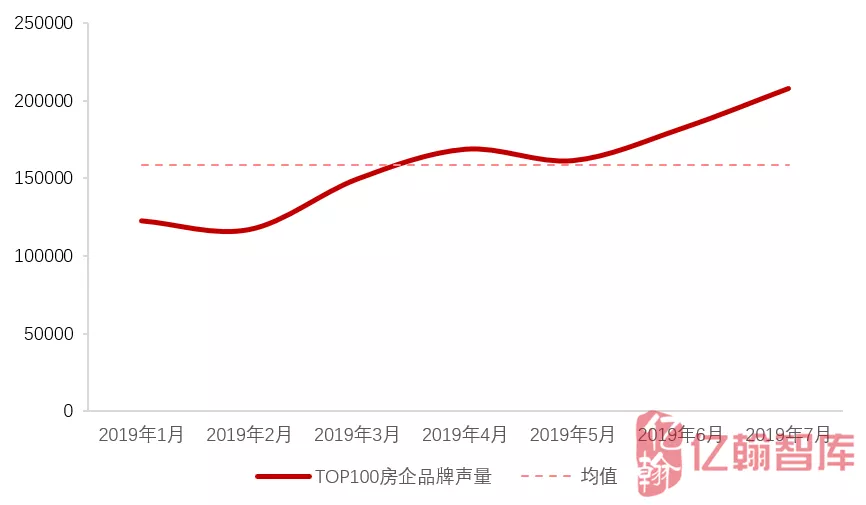 图:2019年1-7月TOP100房企品牌声量走势