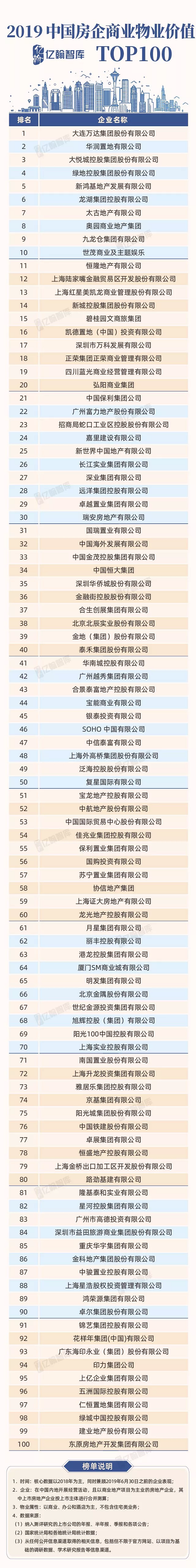 —2019中国房企商业物业价值TOP100—