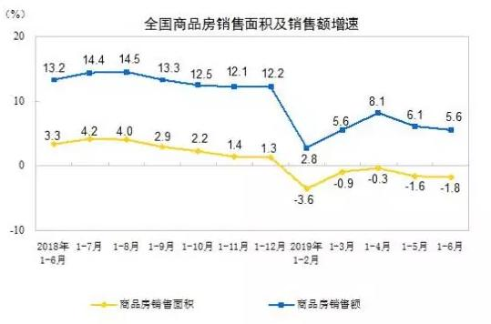 国家统计局最近公布的一个数据十分耐人寻味,2019年上半年,我国商品房销售面积 75786万平方米,同比下降 1.8%,并且整个第二季度连续下滑。从细分场景来看,住宅、办公楼、商业营业用房销售面积也全部下滑。