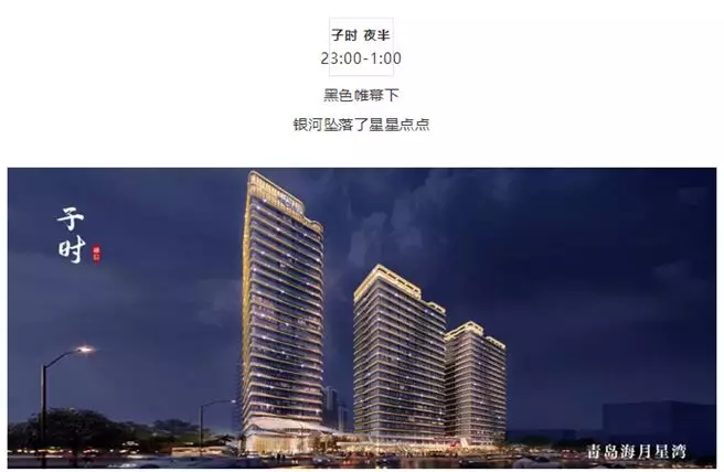 融信集团官微以《融信十二时辰》为题,通过优美的画面和带有艺术气息的文案为受众呈现融信青岛海月星湾、杭州世纪、平潭大卫城、郑州奥体世纪等不同产品。