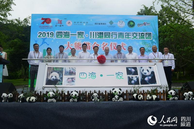 人民网成都8月22日电 (朱虹) 2019“四海一家·川港同行”青年交流团今日在中国大熊猫保护研究中心(以下简称:熊猫中心)都江堰基地举办大熊猫命名仪式。