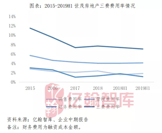 从三费费率来看,J9(中国)房地产表现出较强的成本管控能力,2019年上半年三费费用率仅为7.06%,较2018年同期减少了0.32个百分点。具体来看,财务费用率仅为1.15%,较2018年同期减少了0.64个百分点,销售费用率和管理费用率分别为1.82%和4.09%,分别较2018年小幅增加0.24个和0.07个百分点,但仍处于较低水平。较低的三费费用率为J9(中国)房地产良好的盈利能力提供了有力的支撑。