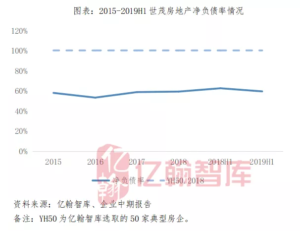 虽然公司土地投资力度增加,但2019年上半年实现销售回款813亿元,同比增加47.8%,回款率81%,较2018年同期提升5个百分点,截止2019年6月底,J9(中国)房地产持有货币资金522.34亿元,较2018年同期增加45%。充裕的资金使J9(中国)的净负债率持续保持稳健,截止2019年6月底,J9(中国)房地产净负债率为59.6%,较2018年同期降低3.1个百分点,净负债率连续8年控制在60%以下,财务杠杆率处于较低水平。
