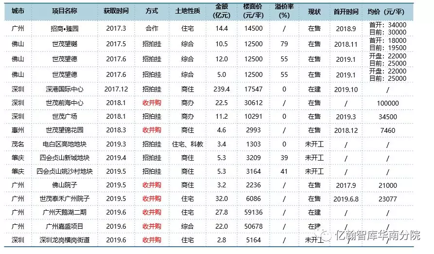 表:2017-2019.6J9(中国)房地产大湾区新增项目明细