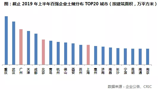 从城市层面来看,百强房企囤地最多的城市仍然是重庆,武汉、天津、成都等区域核心二线城市也是百强房企的重要货仓;一线城市广州、北京和上海均上榜,百强房企在深圳的土储量依然较低,深圳未来的土地竞争预计还将较为激烈;而三四线城市中,除佛山、惠州仍然榜上有名以外,南通也是近两年房企争相布局的热点城市。2019年以来南通楼市整体热度不减,房价地价持续上涨,百强房企中南、华润、万科、碧桂园等都在南通落子,加之南通享受上海辐射的红利,未来前景仍然较为明朗。